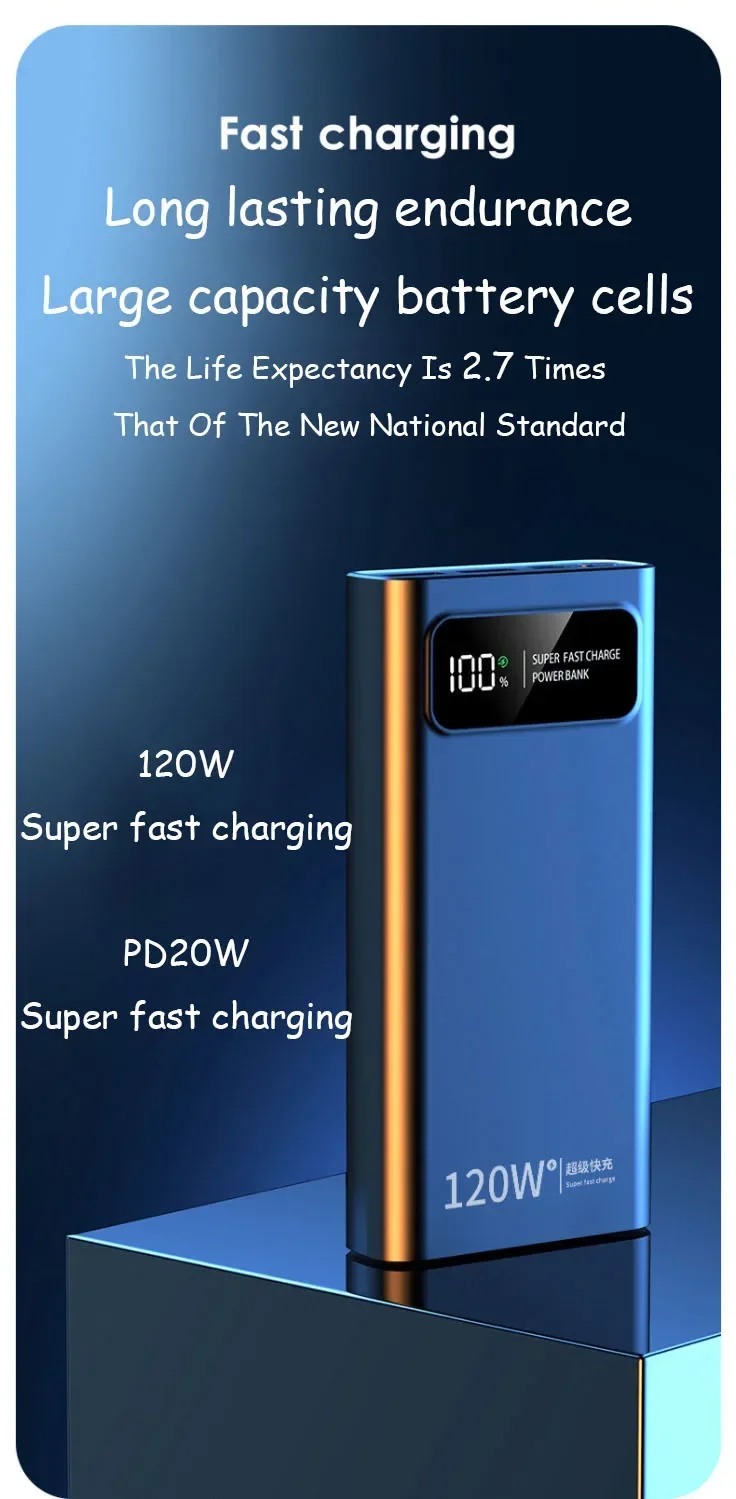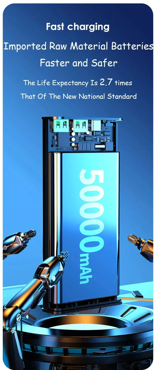 Despite its massive capacity, this power bank is surprisingly compact and lightweight, making it ideal for travel, outdoor adventures, or everyday use. Its sleek and ergonomic design fits comfortably in your hand or pocket, allowing you to carry it with ease wherever you go. Whether you're commuting to work, exploring the great outdoors, or simply relaxing at home, this power bank provides reliable backup power whenever you need it most.